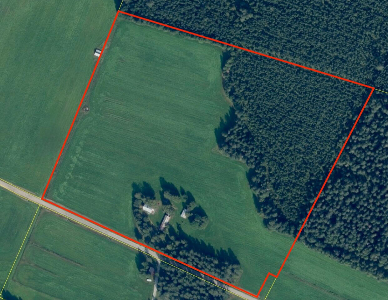 Varav: 4 hektar åker, 3 hektar skog, 4 hektar åker, 3500 m² tomt.Åkermarken brukas idag av en lokal bonde via ett muntligt ettårsavtal. Arrendet är avgiftsfritt mot att marken hålls öppen och välskött. Avtalet förlängs årligen i september.